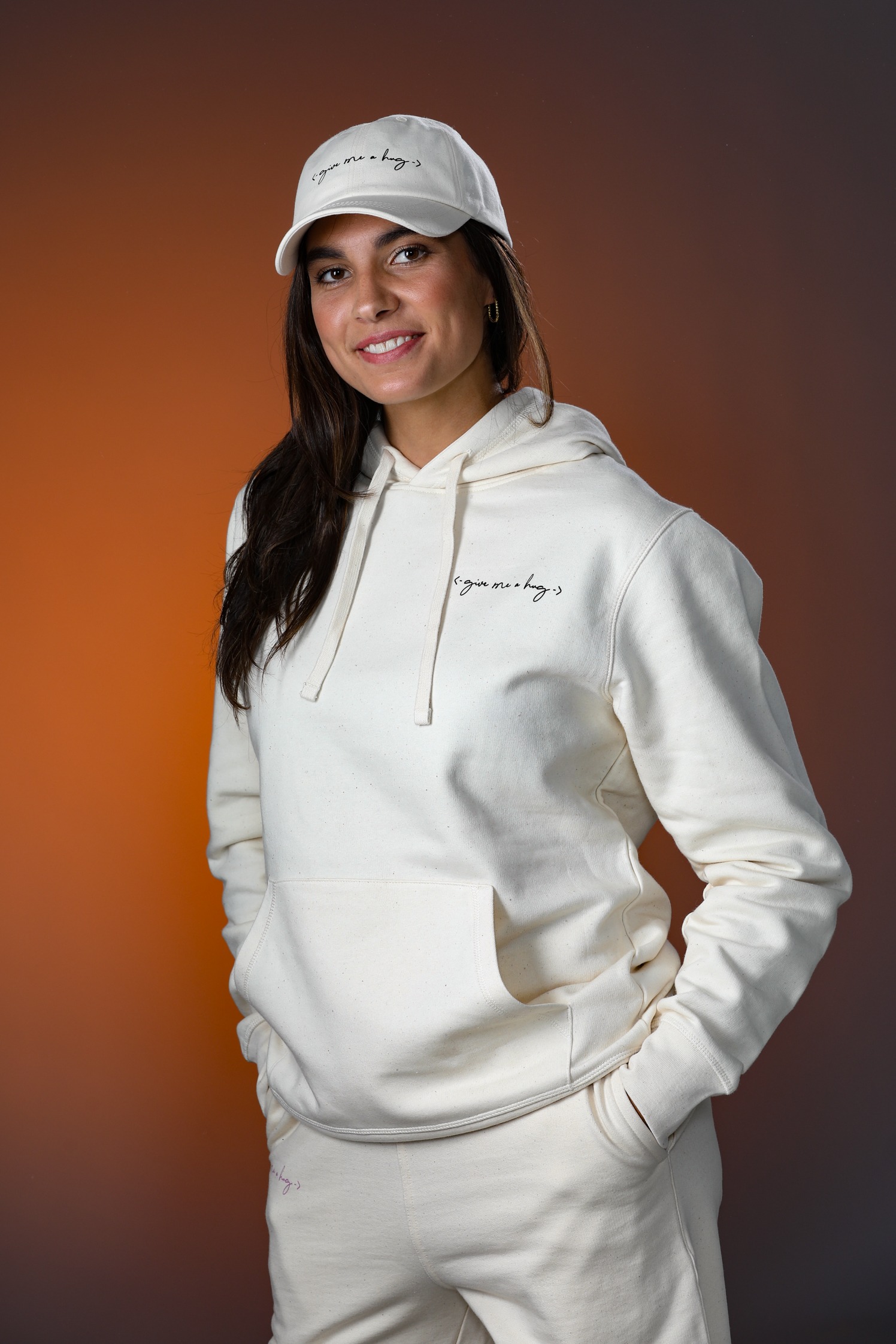 Accessoire emblématique de la collection GIVE ME A HUG, cette casquette couleur sable conjugue douceur et affirmation.