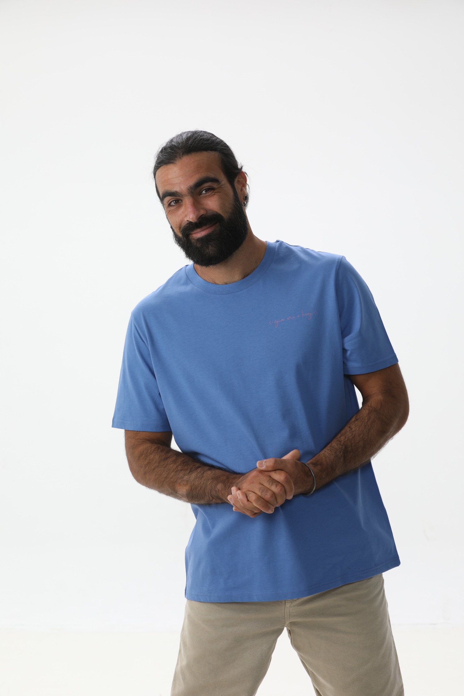 Devant : logo « Give Me a Hug » côté cœur, en rose fluo