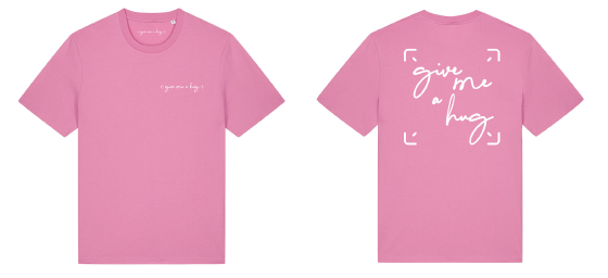 T-SHIRT UNISEXE – GIVE ME A HUG (ÉDITION ROSE & LOGO BLANC)
